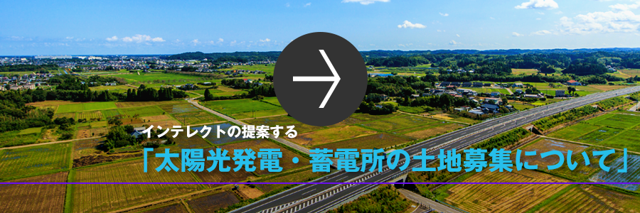 インテレクトでは、太陽光発電所、蓄電所の建設に適した土地を募集しています。再⽣可能エネルギー由来の電気をお求めのお客様が多数おります。 FIT制度を利⽤しない新たな売電スキームで未利⽤地の有効活用をご提案します。