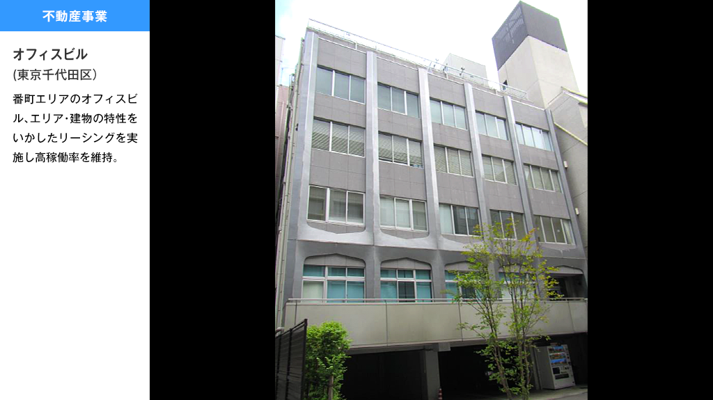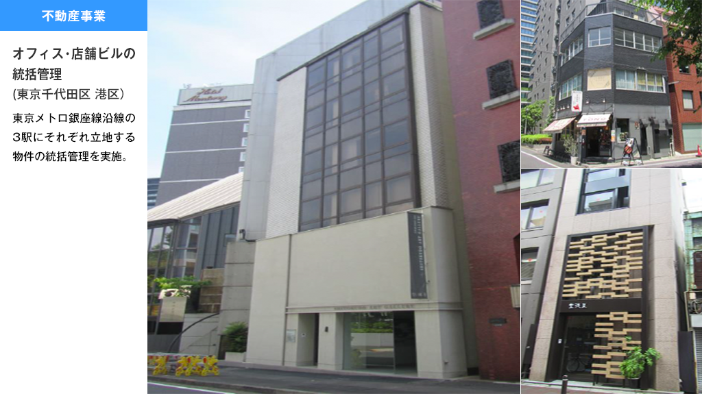 | 業務内容 | グループ会社管理 投資事業、経営コンサルティング 不動産の企画、開発、賃貸、管理、アセットマネジメント及びコンサルティング 再生可能エネルギー施設の企画、開発、売電、管理及びコンサルティング |