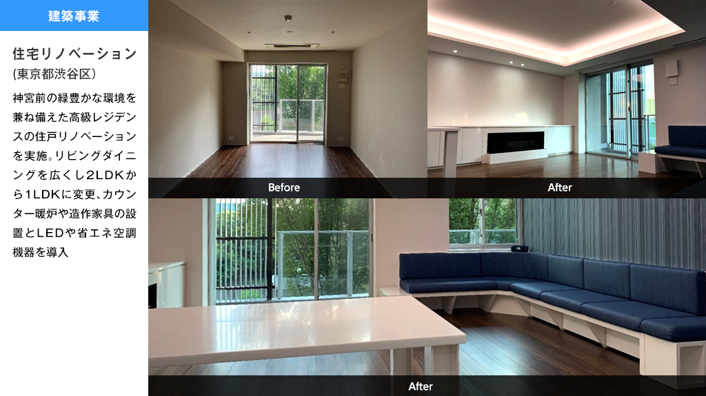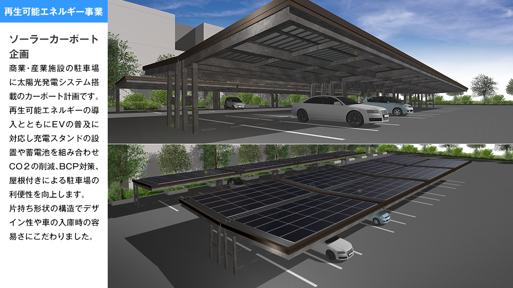 不動産事業や再生可能エネルギー事業の企画開発、設計、建設、運営管理で培ったノウハウを事業者の立場になってご提供します。また、建築事業を通じて、良質な資産構築に貢献します。