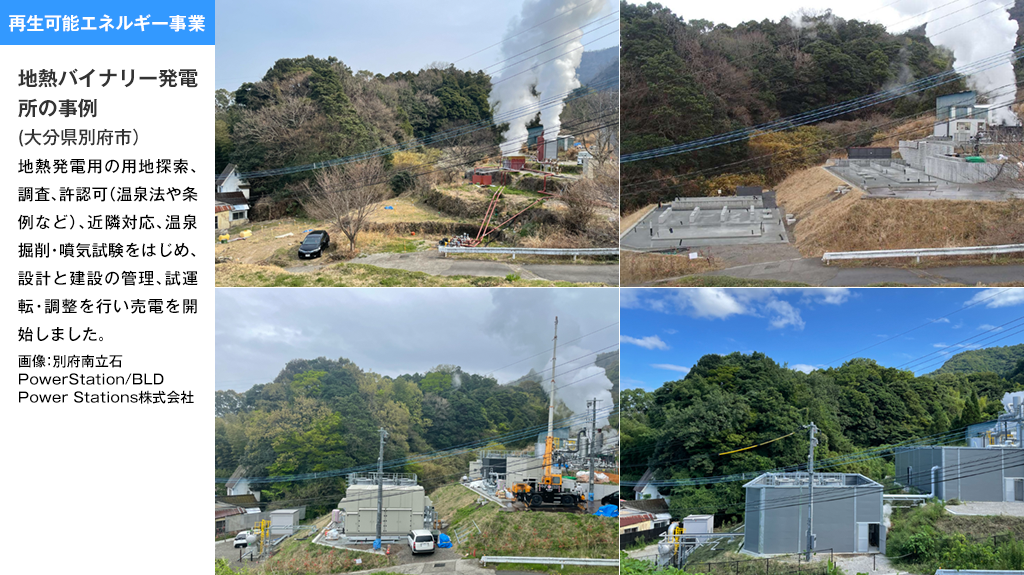 太陽光や蓄電池、地熱発電のノウハウを生かし、企画開発から設計、建設、O&Mまで全国で展開、自家消費型やオフサイト太陽光発電、蓄電池の導入を支援し、循環型社会を目指します。