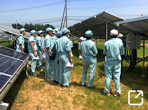 当社がO&Mをしている太陽光発電所で、エネルギーと発電について学ぶ見学会を開催しました。地元の工業高校の生徒と先生らが参加し、太陽光発電システムの仕組み、蓄電池や各設備機器の役割など、再生可能エネルギーに関する理解を深める機会を提供することができました。これを機に、再生可能エネルギーや環境問題に関する意識が高まり、このような事業に取り組む仕事があることも知っていただけました。今後も地域社会に貢献できるよう、学習機会の提供を続けてまいります。