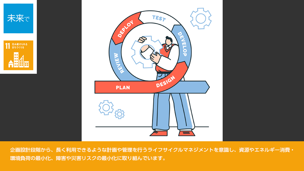 不動産・再生可能エネルギー事業における企画開発、運営管理や建築事業を通じて培ったノウハウや知識を生かし、SDGsの達成へ向け貢献します。